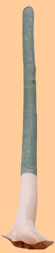 vynikající, díky širokému kořenovému zvonu velmi hlasitý, plný zvuk, snadno hratelné přefuky; bývala moje nejoblíbenější didgeridoo, povrch byl dodatečně upraven, zvrásněn a namořen na tmavě hnědou prodána (3000,- Kč) |