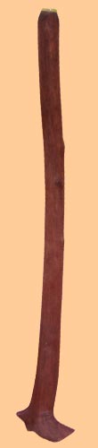 vynikající, díky širokému kořenovému zvonu velmi hlasitý, plný zvuk, snadno hratelné přefuky; bývala moje nejoblíbenější didgeridoo, povrch byl dodatečně upraven, zvrásněn a namořen na tmavě hnědou prodána (3000,- Kč) |