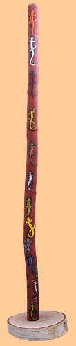 při výrobě jsem se nechal inspirovat Yerryho eukalyptovou didgeridoo, snažil jsem se dosáhnout podobných zvukových parametrů podobnými rozměry a ČuLovou „bazou“ s dokonale hladkým povrchem dutiny pro krásu tónu, tečkovaná malba darovaná |