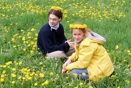 na pampeliškové louce. Cestou zpět lesem jsme šli napřed, abychom připravili oběd těm,